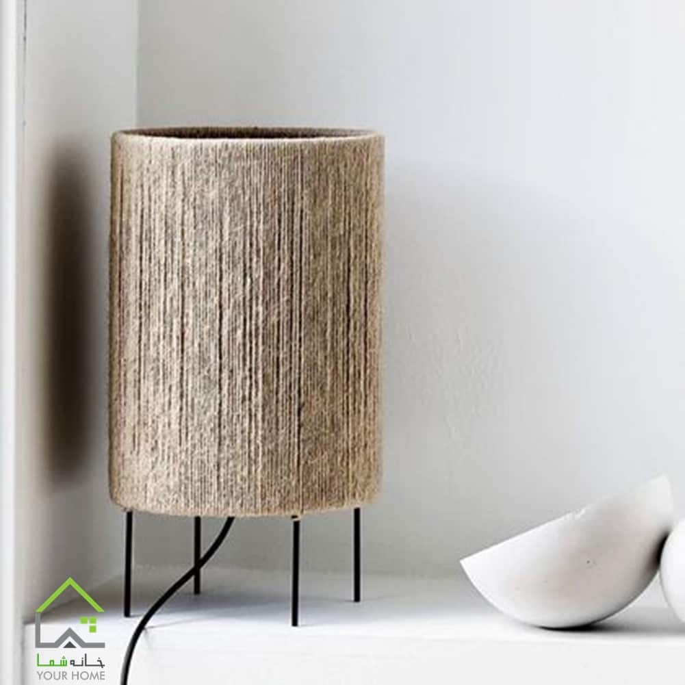 آباژور رومیزی مکرومه، مدلی ساده و بدون حاشیه مناسب برای اتاق خواب و دیزاین داخلی به سبک بوهو ، مدیترانه ای ، مینیمال این مدل را می توانید با آویز های سقفی حصیری ست کنید.