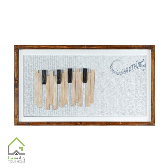 تابلو چوبی طرح پیانو در ابعاد 52 در 92 سانتی متر چوب ها با چینش دکمه های پیانو است که حس توازن و ریتم القاء می کند.